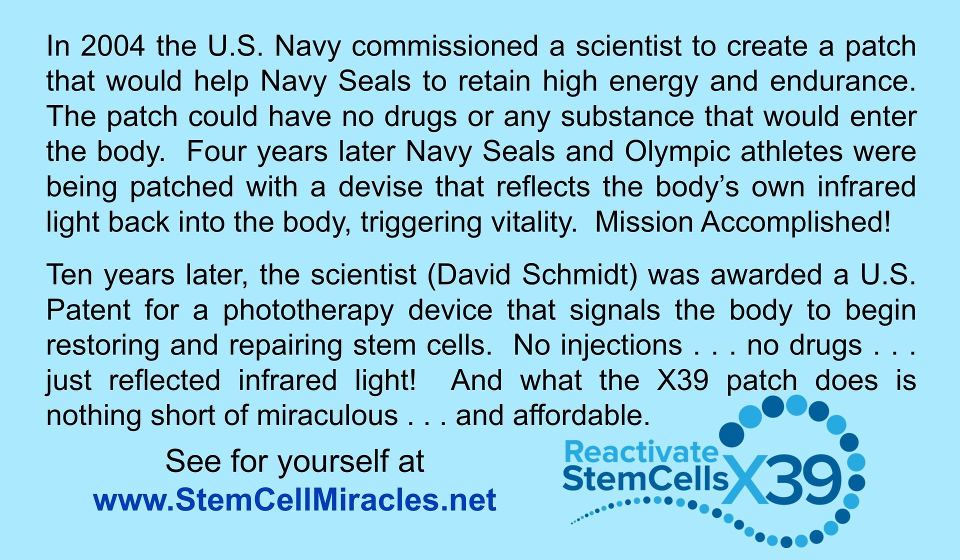 #2 Supply each Preferred Customer with several Stem Cell Miracles cards so that they can share the X39 story with their friends and point them to the web site that provides information on why everyone needs the patch. There is a space for you to print your contact information so they can contact you if they are interested in getting on the patch.